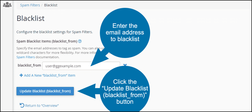 When you blacklist an email address, all email sent from that address is blocked from reaching your inbox. Alternately, whitelisting an email address allows email from that address to bypass spam filters.
