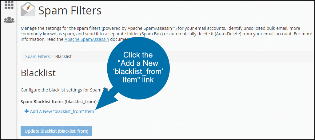 Click the “Add a New ‘blacklist_from’ Item” link.
